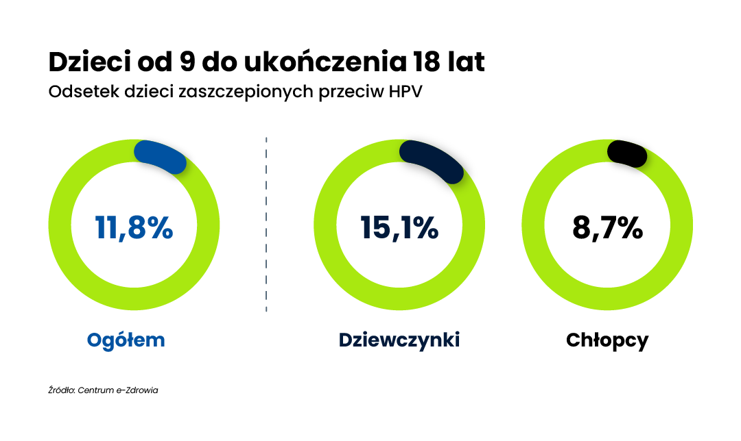 Szczepionki podawane w formie zastrzyku są jednymi z najlepiej przebadanych preparatów na świecie. Tymczasem w grupie 4,88 mln dzieci od 9 lat do ukończenia 18 lat zaszczepionych jest obecnie 11,8 proc. dzieci. Dziewczynki są częściej zaszczepione niż chłopcy (15,1 proc. w porównaniu do 8,7 proc.).