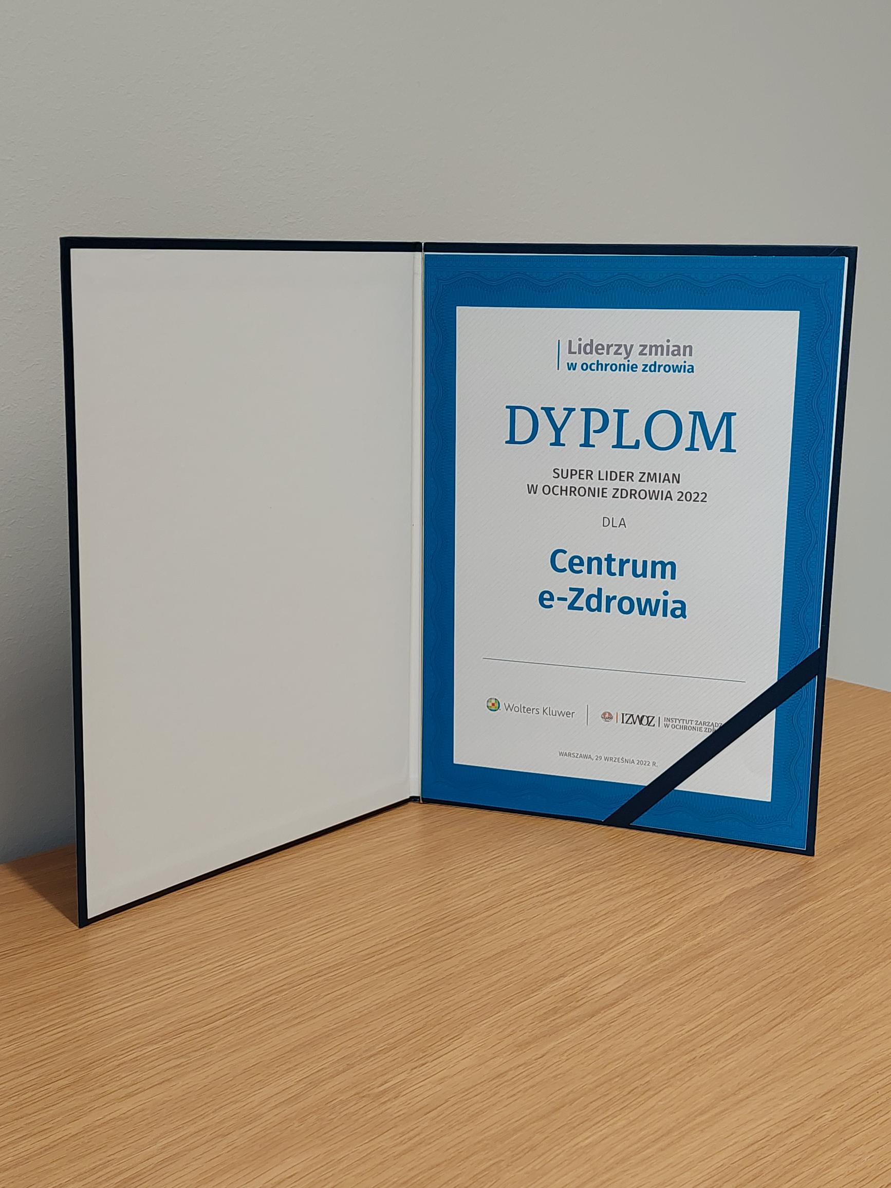 Wyróżnienie jest przyznawane przez wydawnictwo Wolters Kluwer oraz Instytut Zarządzania w Ochronie Zdrowia Uczelni Łazarskiego. Kapituła konkursu doceniła szczególny wkład Centrum e-Zdrowia w budowę nowoczesnego sektora ochrony zdrowia w Polsce.