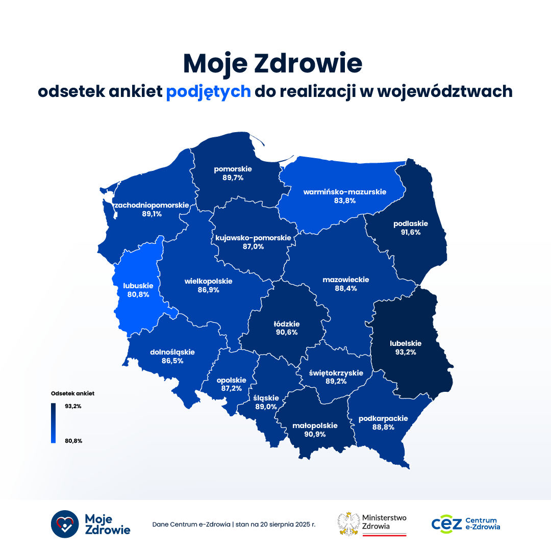 Natomiast inne województwa mają najlepszy odsetek liczby ankiet podjętych w porównaniu do ankiet złożonych: lubelskie (93,2%), podlaskie (91,6%), małopolskie (90,9%) i łódzkie (90,6%).