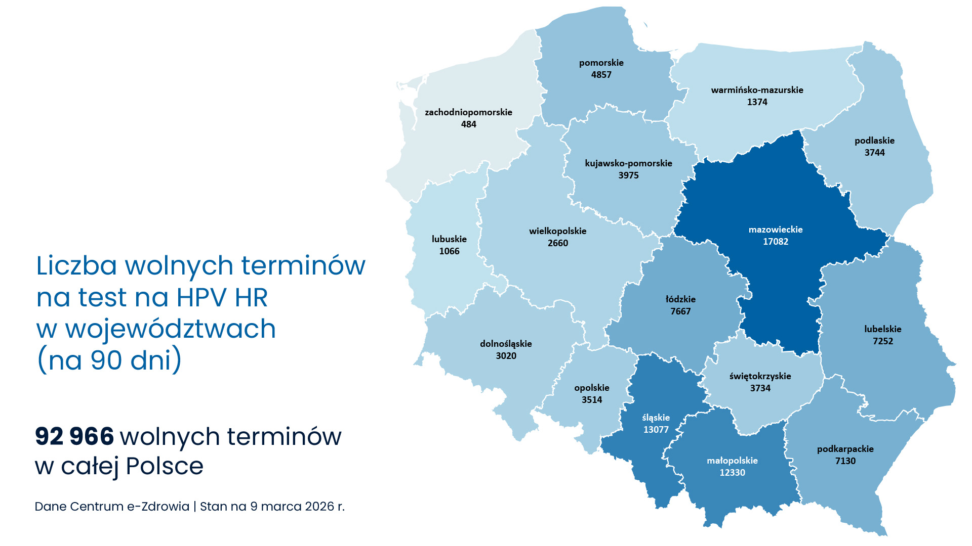 - umówienie badań (mammografia, test HPV HR) lub pierwszej wizyty u kardiologa przez centralną e-rejestrację